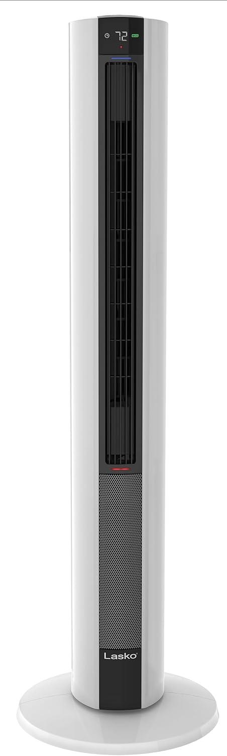 Lasko 1500W Oscillating All Season Tower Fan and Space Heater w/4 Quiet Fan Speeds, 3 Heat Settings, Auto-off Timer, & Remote for Home & Office, Black(Black White)