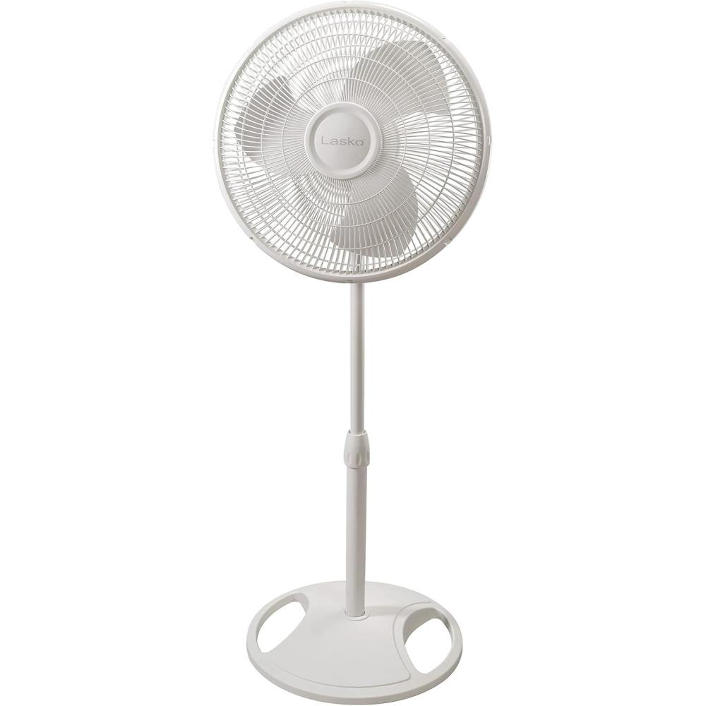 Great looking, high performing and ideal for all rooms, this white, oscillating stand fan from Lasko is fully-featured. Fully adjustable height and tilt-back head allow you to direct the airflow right where you need it most with 3 quiet speeds and widespread oscillation.Additional features include: Adjustable height Tilt-back fan head 3 quiet, energy-efficient speeds Made in the USA from domestic imported parts The Blue Plug Patented safety fuse technology Simple no-tools assembly